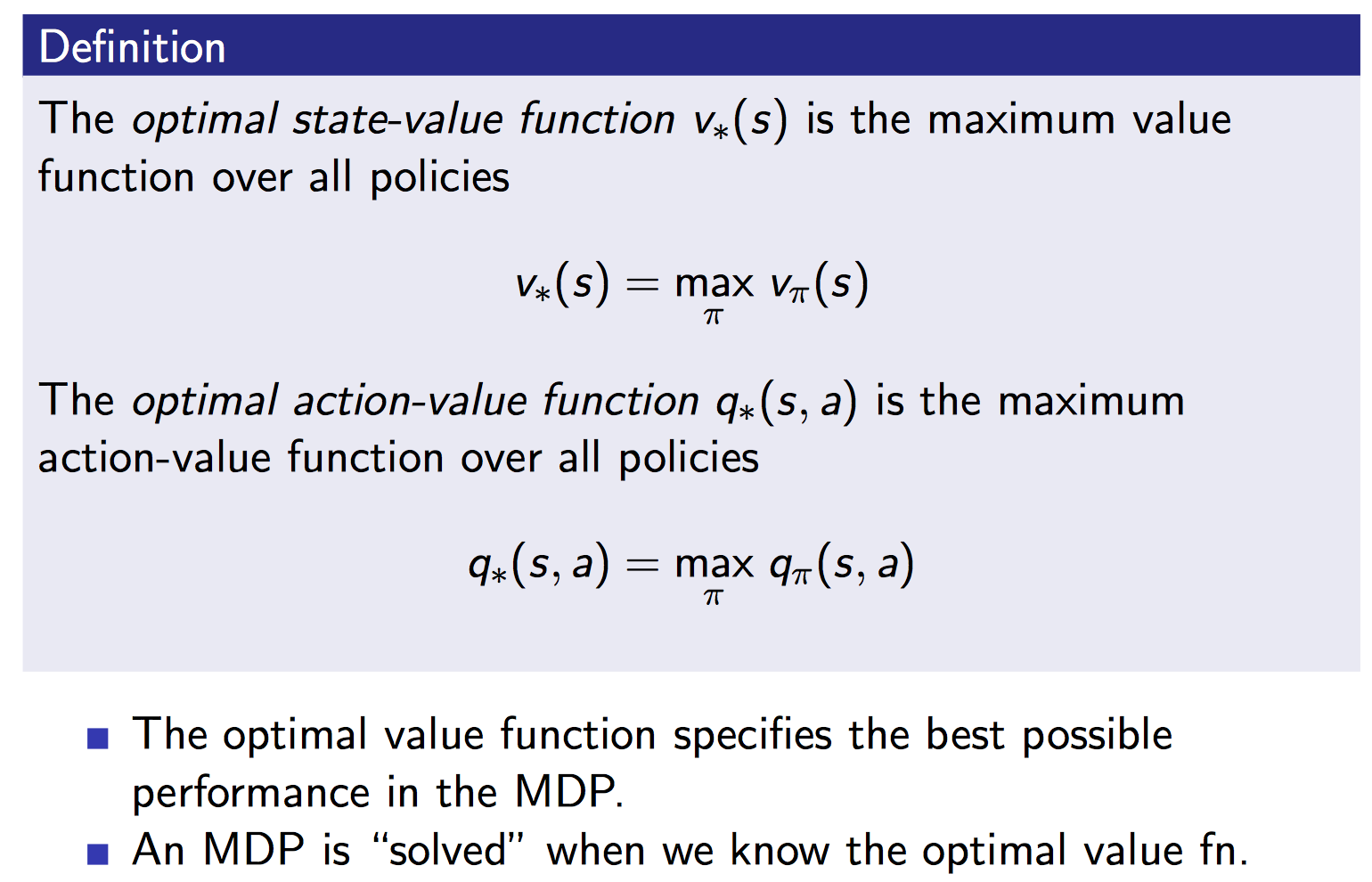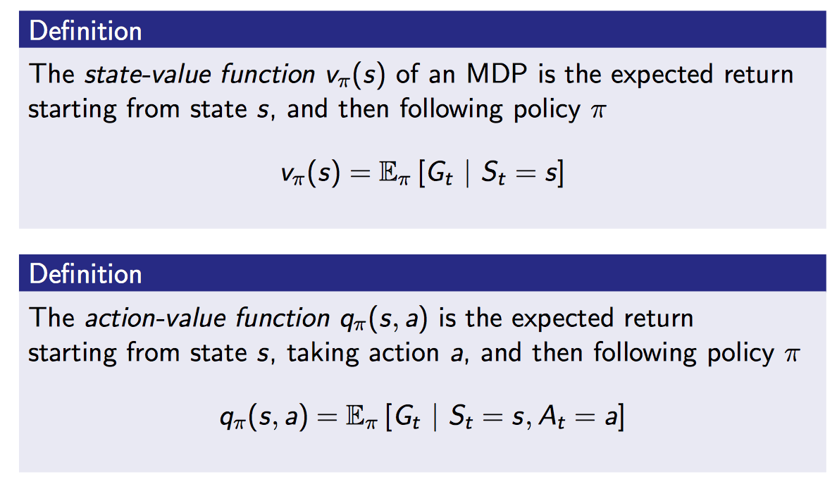 - action-value function: 현재 state에서 어떤 action을 취하느냐에 따라서 나오는 reward