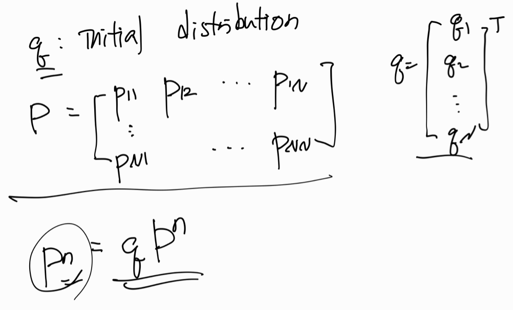 markov chain이 있고 거기서 시간이 충분히 흘렀을 때 그때의 마지막에 state가 어떻게 될 것인가에 대한 확률이다.