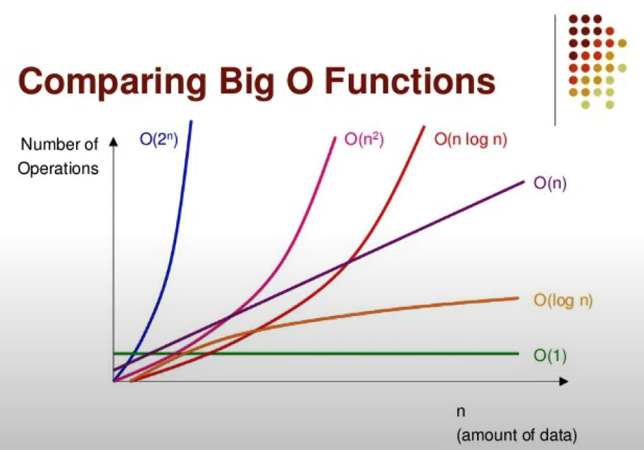 상수 함수 < 로그 함수 < 선형 함수 < 다항 함수 < 지수 함수