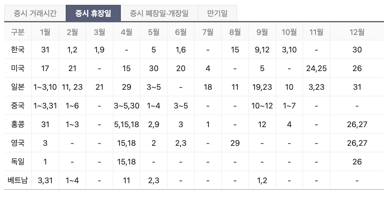 미국 증시 휴장일