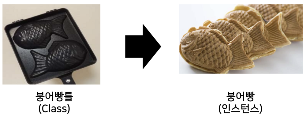 - 붕어빵 틀 = Class, 붕어빵 = Instance