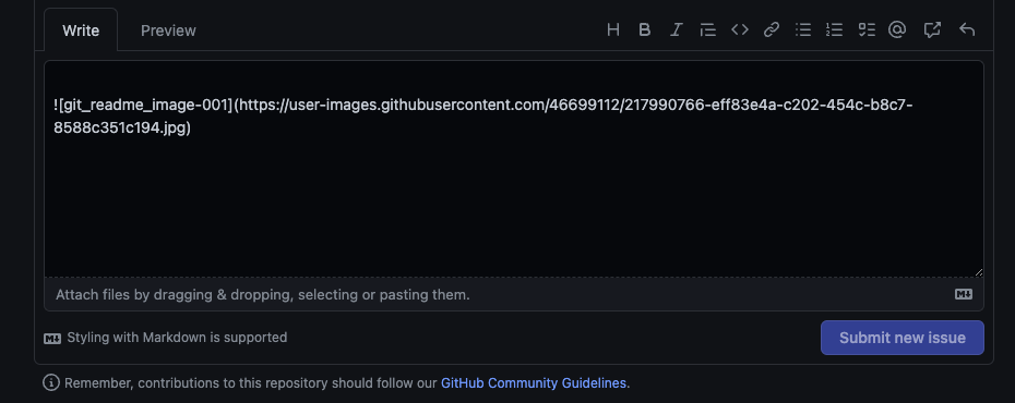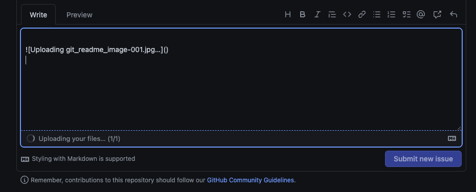 4. 업로드 시 "! [Uploading {image file name}]()"라고 보입니다.