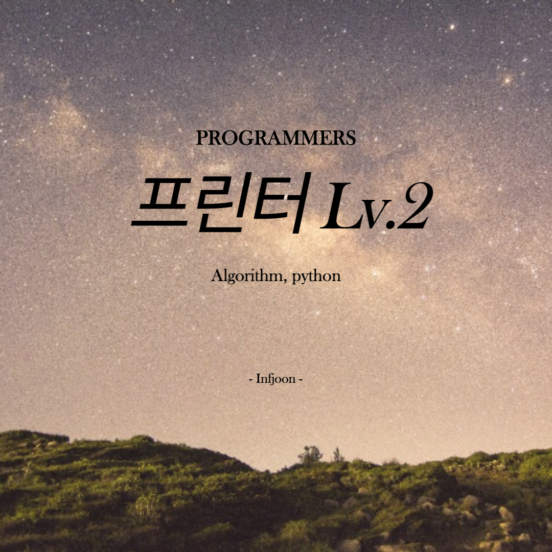 예를 들어, 4개의 문서 ( A, B, C, D )가 순서대로 인쇄 대기목록에 있고 중요도가 2-1-3-2 라면 C-D-A-B 순으로 인쇄하게 됩니다.